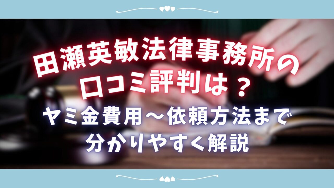 本記事では、田瀬英敏法律事務所の「ヤミ金対応」の実力から、費用の詳細、依頼の流れまでを徹底的に解説します。